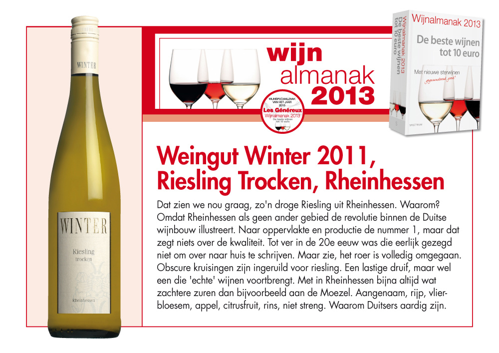 Winter arbeitet nach ökologischen Prinzipien, jedoch nicht aus Marketinggründen. Deshalb beantragt er keine Zertifizierung. Sein Riesling der Einstiegsklasse ist von vorbildlicher Qualität und – angesichts der Preise vergleichbarer Weine – ein echtes Schnäppchen!